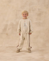 Beige sweatshirt with sailboat graphic and &